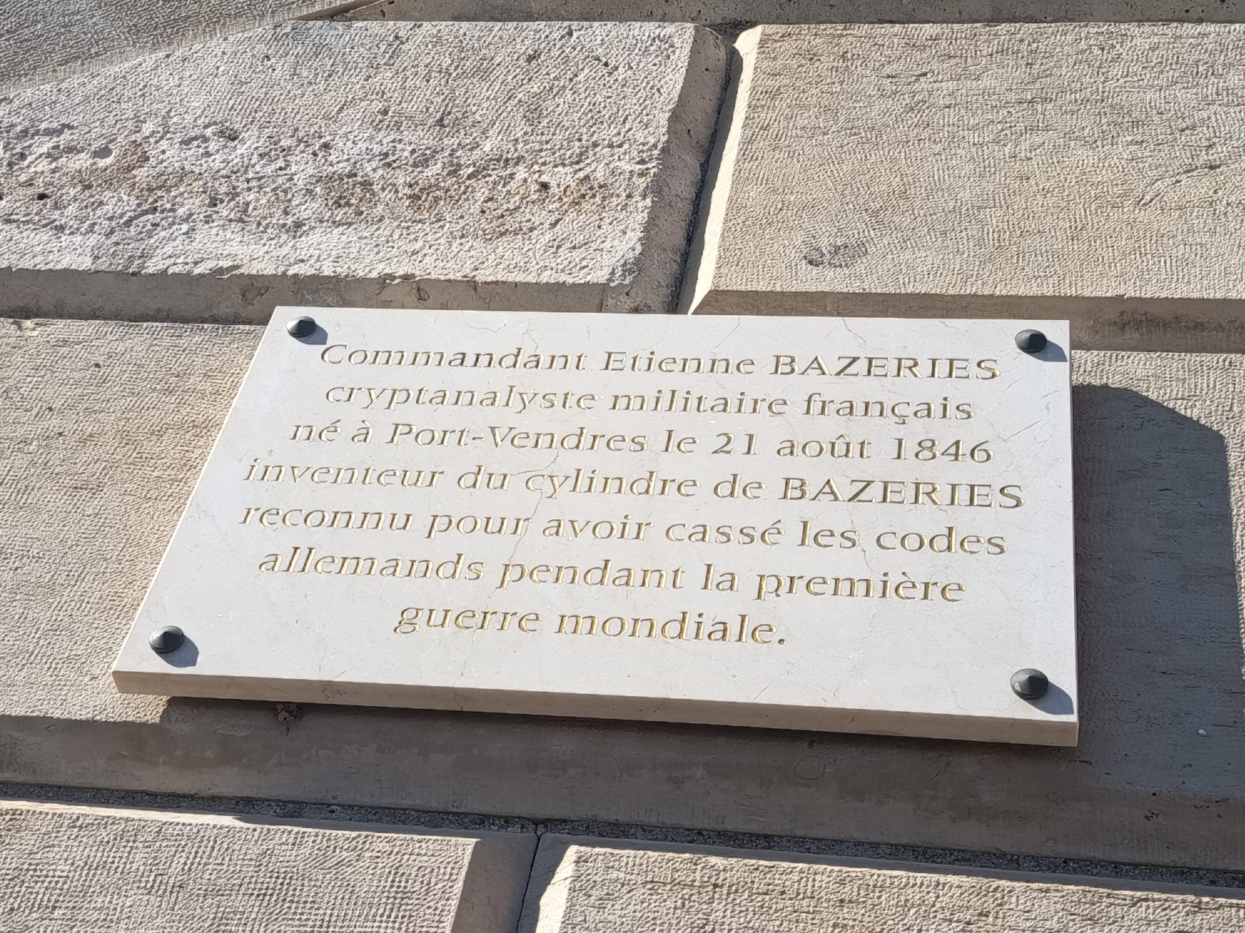 Le texte parle d’Étienne Bazeries, né à Port-Vendre le 21 août 1846, mort en 1924 à 78 ans. Il était cryptanalyste militaire français et est connu pour avoir inventé le cylindre de Bazeries. Pendant la Première Guerre mondiale, malgré ses 68 ans, il a réussi à casser les codes allemands, jouant un rôle clé dans le déchiffrement des messages ennemis, notamment ceux liés aux sous-marins. Il souligne que Bazeries est moins connu que les figures associées au déchiffrement de la Seconde Guerre mondiale, mais son travail fut tout aussi important à son époque.