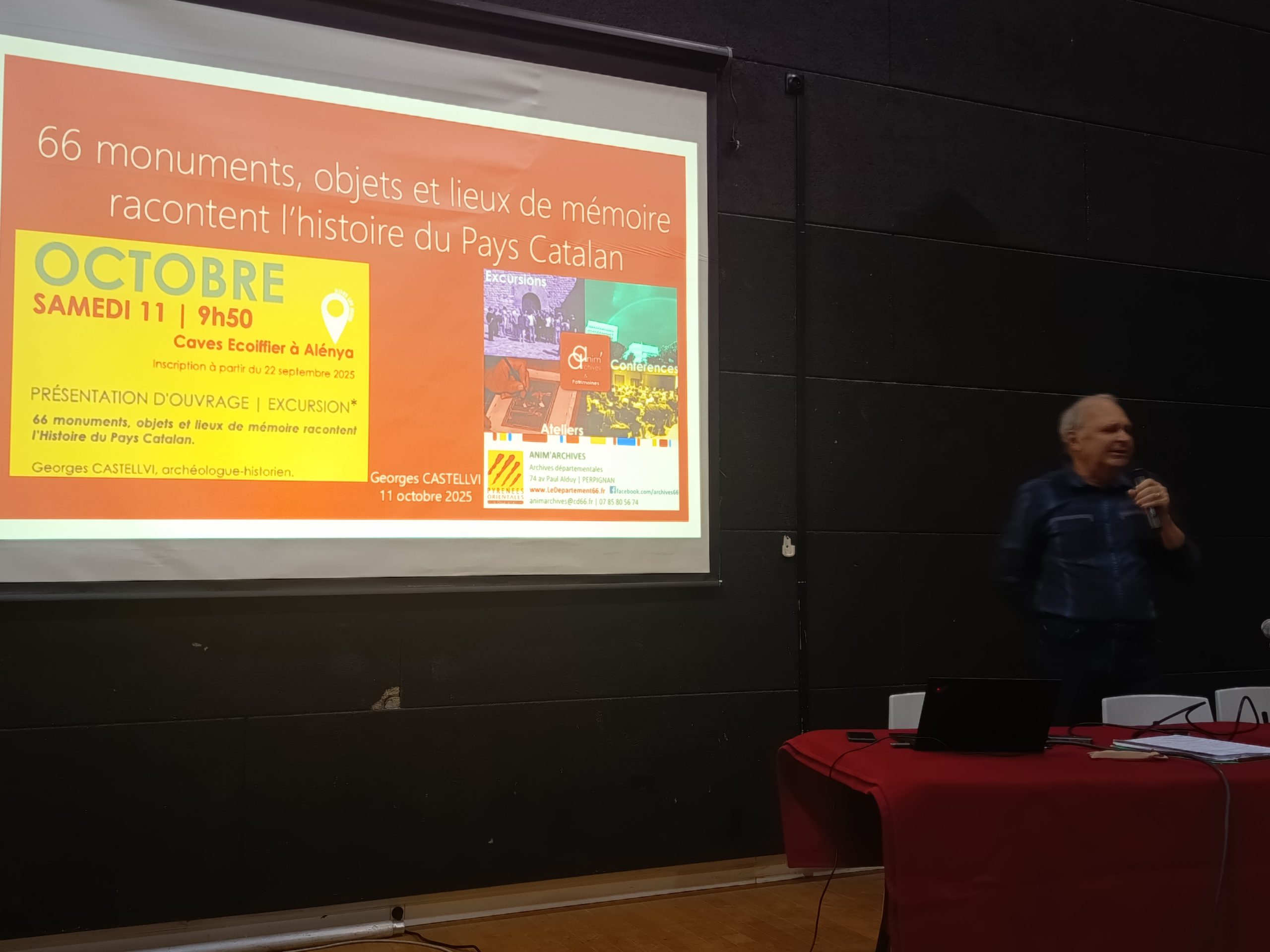 En partenariat avec les Archives Départementales, Georges Castellvi, archéologue-historien a présenté un projet d’ouvrage à Alénya intitulé “66 monuments, objets et lieux de mémoire racontent l’histoire du pays catalan”, à paraître aux éditions Trabucaires. Le livre, dont la sortie a été retardée pour des raisons techniques, vise à raconter l’histoire du pays catalan à travers des éléments matériels, monuments, inscriptions, objets en les replaçant dans leur contexte historique et pédagogique.