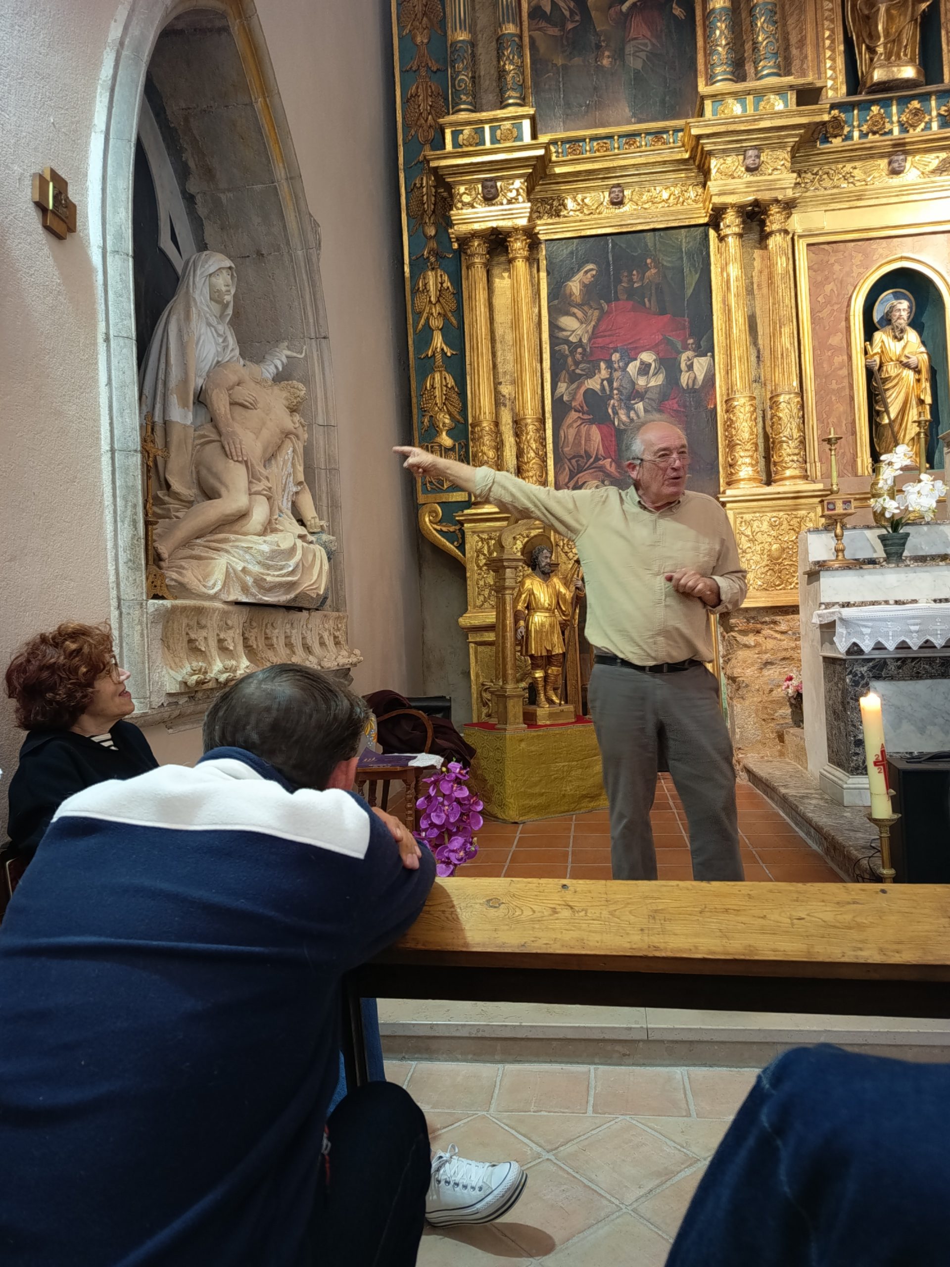 De petites anecdotes au sujet du clocher civil, construit très près de l’église en 1890 pour s’affranchir de celle‑ci, ont jalonné la visite, fort intéressante et riche en détails. Une nef unique, un chevet plat de style gothique, modeste…