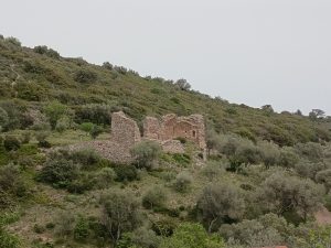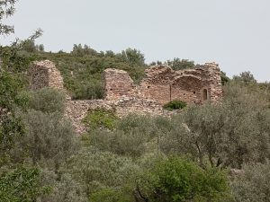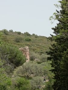 Marche jusqu’aux ruines de l’église Saint‑Paul‑le‑Vieux, qui date du XIIᵉ siècle, romane méridionale, et qui fut abandonnée au XVIᵉ siècle, certainement à la suite d’une épidémie de peste.